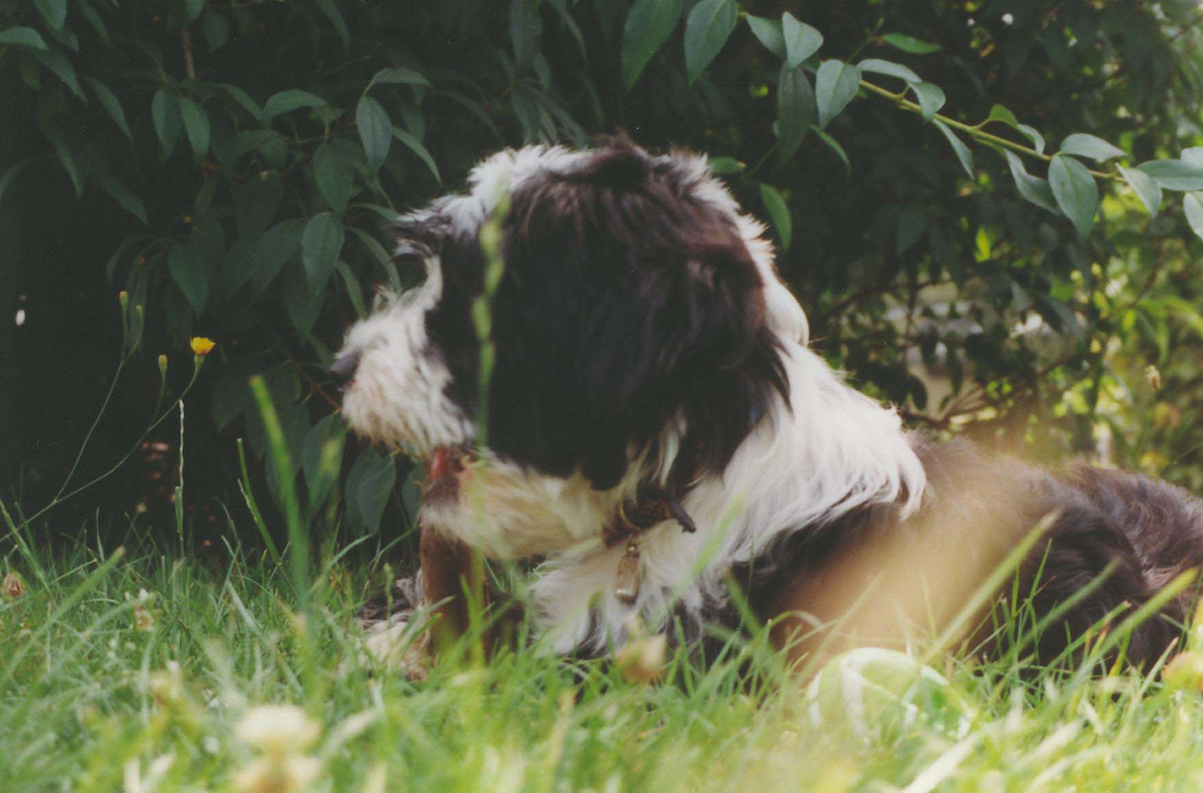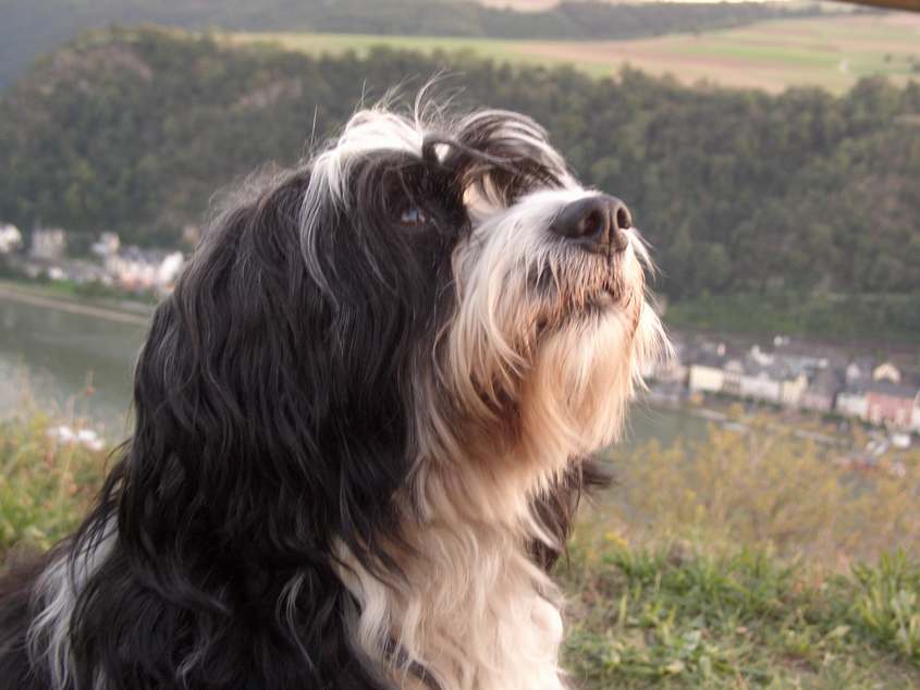 Bonny war unsere Hündin, tibetischer Abstammung. Sie wurde 1994 geboren und ist als junges Welpen zu uns gekommen. Nicht wir haben sie, sie hat uns, bzw. meine Frau ausgesucht. Marie, ihre Mutter, warf 12 Welpen und das ganz in der Nähe von uns. Bonny, die die mittlere war, hieß "Pünktchen", weil sie als Welpe einen schwarzen Punkt auf dem Kopf hatte. Diesen hatte sie eigentlich immer, nur waren die Haare länger und man sah ihn nicht mehr so deutlich. Bonny ist für uns zu einem vollwertigen Familienmitglied geworden. Unsere Freunde wussten dies und akzeptieren dies auch. Die meisten unserer Freunde hatte Bonny sowieso um den Finger, ähhm die Pfote natürlich, gewickelt. Leider starb Bonny am 24. Februar 2012 - zwei Monate vor ihrem 18ten Geburtstag. Wie gerne hätten wir ihr Volljährigkeit gefeiert. Bonnys Bilder bleiben für immer in unseren Köpfen. Auch werden wir ihre Bilder von den Wänden, dem Kühlschrank und der Bürowand nicht abhängen – denn sie war, ist und bleibt ewig ein Teil unseres Lebens. Nun ein paar schöne Bilder von unserem "Engel auf vier Pfoten".