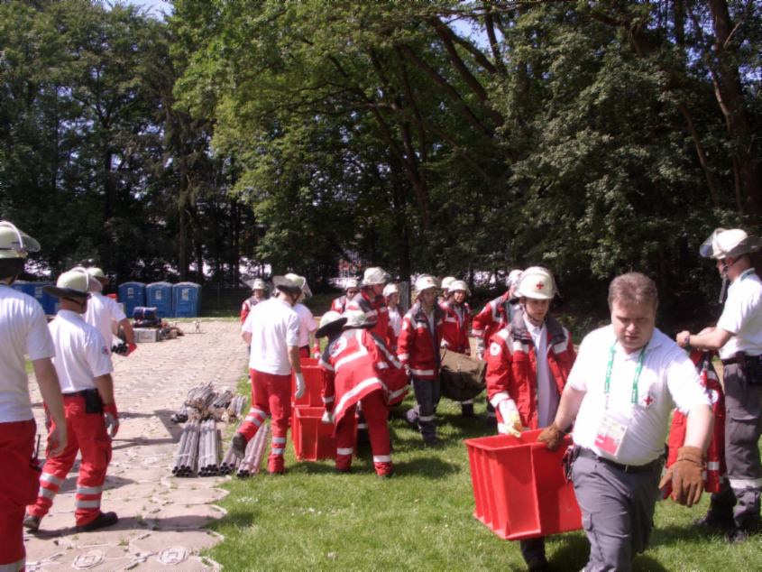 ihr Quartier mit dem DRK direkt neben dem Stadion-Schwimmbad aufbauten und